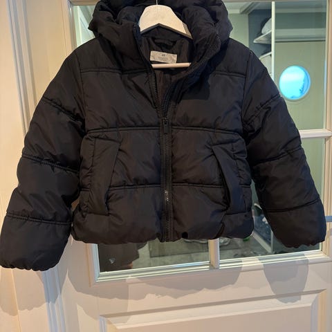 Kul jakke fra H&M i str. 134. Knapt brukt, ikke slitt! Glidelås fungerer prima. Stilig to-stoff med denim på kropp og mer glinsende blått på armene🤩