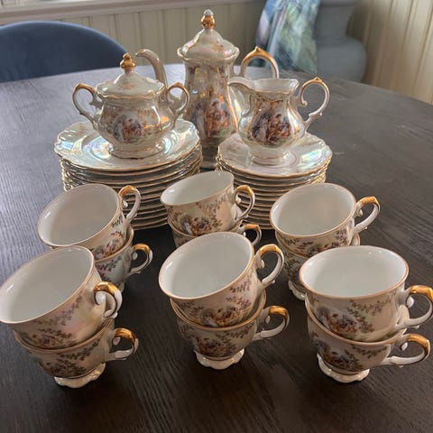 Settet er ikke antikk men vintage, fra 1970. Meget pent brukt i noen år men har sittet i skapet de siste 30 år.