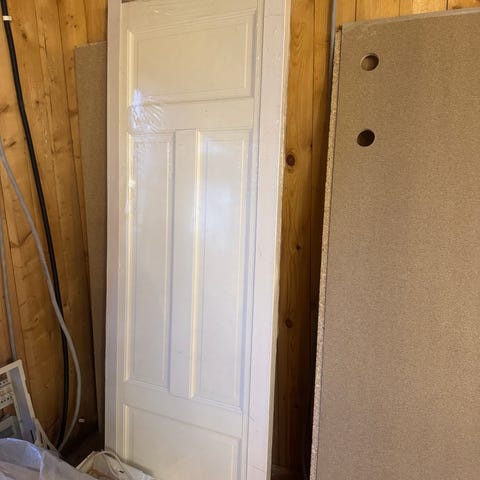 Ytterdør av teak fra 70-tallet. Har kun dørblad, ikke karm