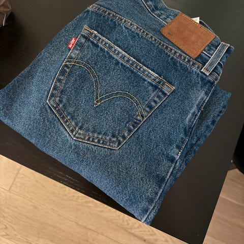 Levi's 501 jeans i blå farge, størrelse W29 i livet og L28 i lengden. Laget av denim materiale. Passer for kvinner. Pent og lite brukt. Selges fordi den er for stor til meg.
