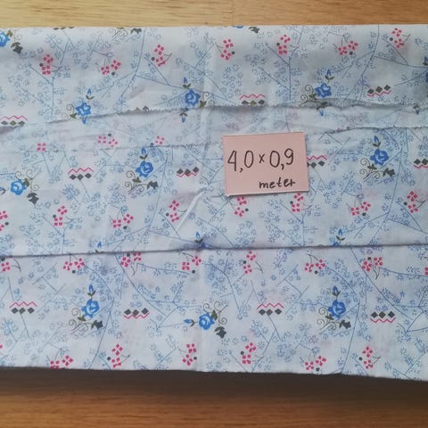Stoffet er helt nytt. Det har en liten jentekanin med blå striper. Bredden er 140 cm og høyden er 100 cm . Selges kr 150,-. Se gjerne lignende annonser hos meg med tanke på frakt. Kjøper betaler frakt. Jeg sender med PostNor da de er billigst. Kjøper Vippser før jeg sender.