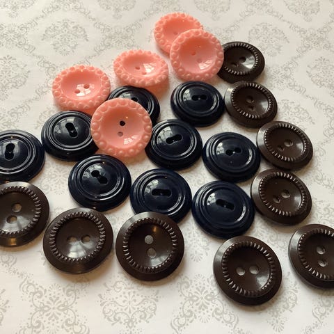 Vintage knapper i ulike plastmaterialer. Til høstens strikke- eller syprosjekt.