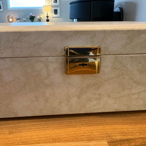 Snykkeskrin etter min mor. Mangler ett par hemper innvendig til lokk og en skuff ellers ok. Nøkler følger med.