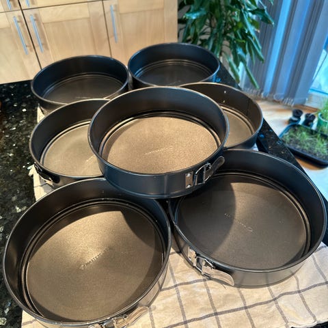 Kake-formene har avtakbare sider med låsemekanisme for enkel løsning av kaker.