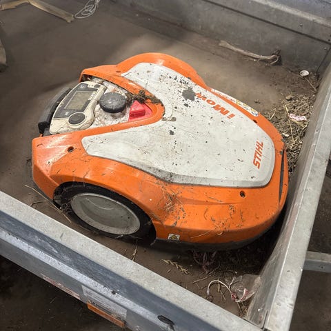Velfungerende robotklipper. Beregna for tomter opp til 3500 m2. Denne har gått feilfritt i 3 sesonger uten problemer med klipper, MEN har gått på en tomt med ett alt for krevende terreng. Forsøkt og oppgradere til terreng hjul uten at det ble den største suksessen. Selges grunnet overgang til leddstyrt 4x4 klipper. Selv den sliter enkelte plasser der denne har gått tidligere.