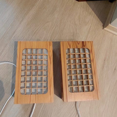 To stk lamper i treverk med typ striestoff. Godt ivaretatt. Gammel kontakt(ikke testet).