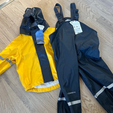 Pent brukt regnsett fra Stormberg. Vannsøyle 30 000. Pent brukt kun noen få måneder. Jakken er størrelse 86, mens buksa er størrelse 80. Buksa er god i størrelsen, så vil si den også tilsvarer 86. Kun et liten bruksmerke øverst på regnjakken, se bilde.