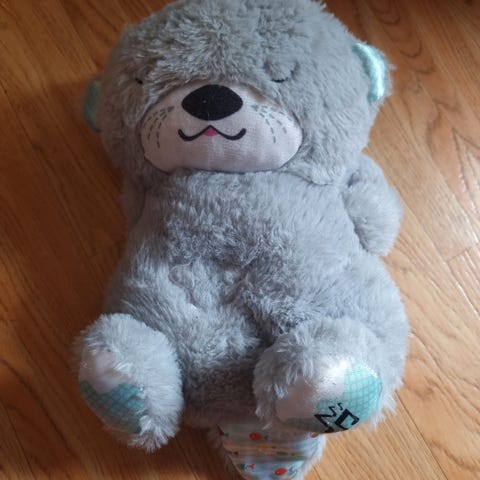 Pent brukt oterbamse med musikk og lys. 3 valgfrie lydmønster, 2 volumnivåer og lys som lyser opp i taket mens den spiller. Reagerer på barnegråt og starter å spille igjen.