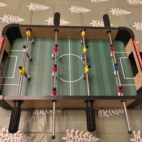 Solid, men godt brukt (mangler blant annet "tellingen" på den ene siden). Spillet/spillerne fungerer bra. Ganske tungt og må bæres opp en litt smal trapp, så dere må stille (minst) to for å hente.
