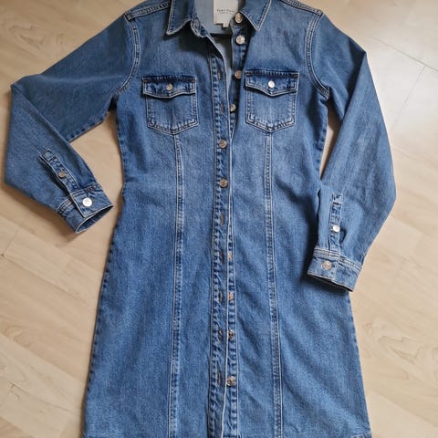 Denimkjole/jeanskjole med lange ermer og knapper foran
