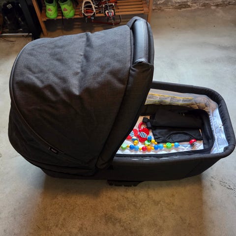 Nesten ny liggedel til Emmaljunga. Kun brukt noen ganger av 1 barn tidligere. Selges den da den ikke passer understellet på vognen vi har i dag. Kan være behjelpelig med levering i Moss/Rygge/Råde. Sendes ikke i posten.