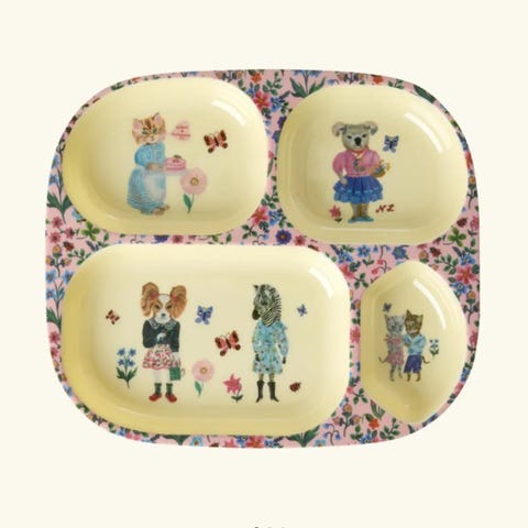 2 nydelige og like hankekopp/barnekopp/kopp i melamin og en tallerken med motiv av blomsterbarn fra Elsa Beskows historier.