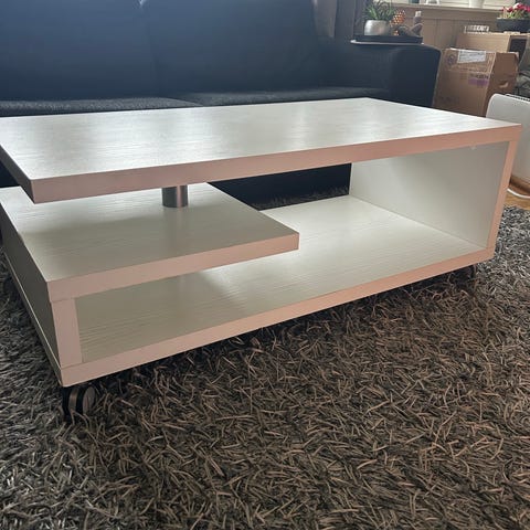 Hel og pen TV bord gis bort. Noen skruer som må strammes. To hull i bakplate for kabler og lignende. Bakplaten er litt skadet helt på bunn (se bilder), men er ikke synlig fra framsiden Må hentes