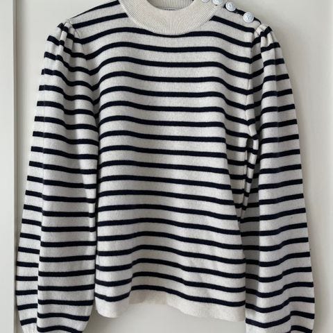 Ganni Genser i størrelse XS for kvinner, i grønn farge. Genseren har et åpent mønster og er laget i et strikket materiale. Passer til daglig bruk og kan kombineres med ulike antrekk. Som ny!