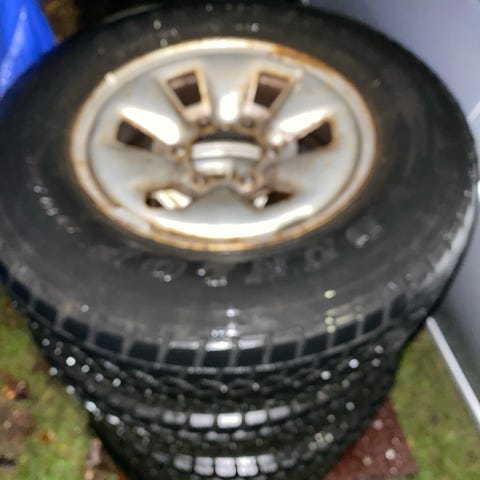 Har også to hjul til av samme type men der er dekk svært slitte på siden ut mot felgen. De kan følge med gratis