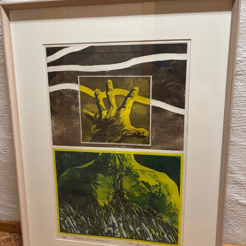 Bildet er laget av kork. Det er 58x68cm utvendig.