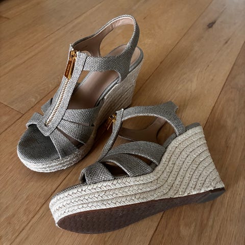 Michael kors hæler i størrelse 37. Skoene har åpen hæl med stropp og glidelåsdetalj foran. Passer til damebruk. Veldig behagelig å ha