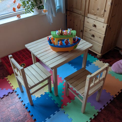 Bord og stol av tre til barn selges. (Barnemøbel) - Må hentes.