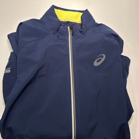 Selger en nesten ubrukt Asics Road løpejakke for herre. Kun brukt på to lette løpeturer, men ble hakket for liten for meg.