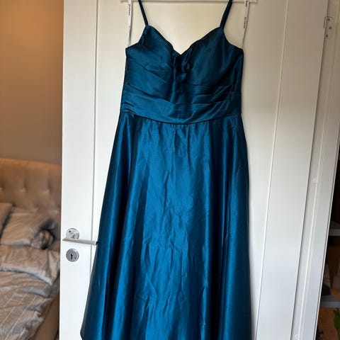 Kjolen er ren og hel. Nyvasket. Som ny. Brukt kun en gang. Jeg brukte den som kort kveldskjole i bryllupet mitt.