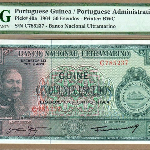PORTUGISISK GUINEA 🇬🇳 50ESCUDOS. P-44a. 1971. UNC