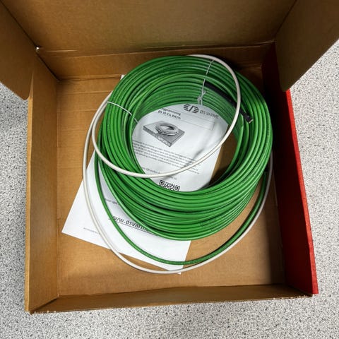 ØS 30-21L toleder varmekabel 8W/m, 375W er velegnet for gulvvarme ved effekter under 70W/m² for både nybygg, tilbygg og rehabilitering i tørre rom og i våtrom.