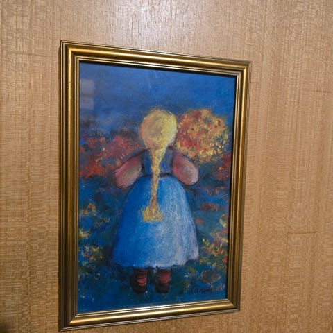 Maleri - Seilbåt på kysten. Bildestørrelse uten ramme i cm 65 x 55. Sendes ikke, må hentes