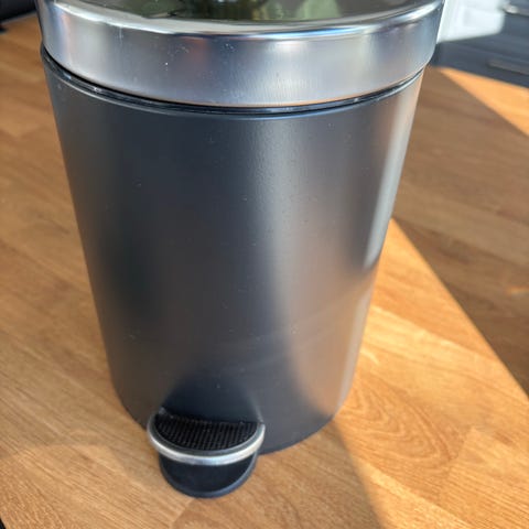 Metallbøtte med lokk og håndtak grå