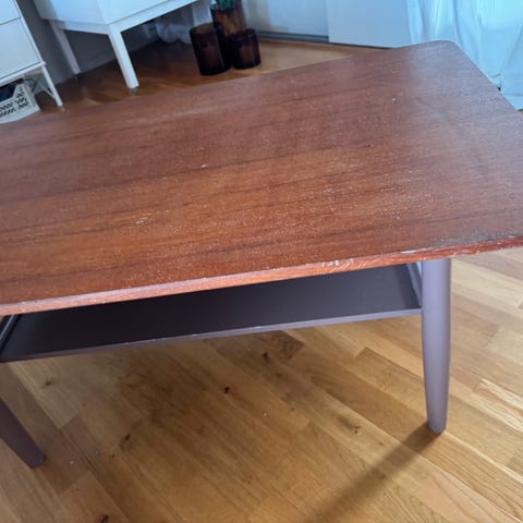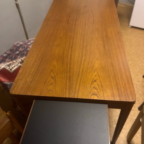 Teak salongbord som kan utvides. Har noen ringer og skraper på bordplaten. Se bilder. Ellers like helt.
