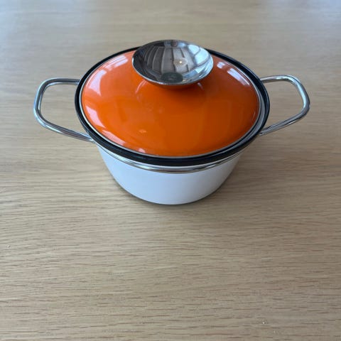 Cathrineholm sensation mini gryte m/lokk i emaljert stål passer perfekt til ovnsbakte desserter eller som en liten sauskjele.