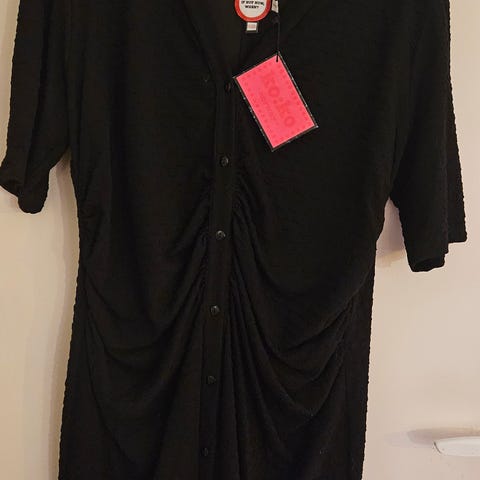 Pent brukt kjole fra koko norway str 40. 72 % viskose, 26 % polyester, 2 % elastan. Ingen hull, flekker ell. Glidelås under armen. Knapp øverst i halslinningen.