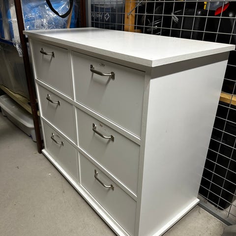 Selger en pent brukt hvit kommode. Kommoden er i god stand med normal, lett bruksslitasje, og fungerer akkurat som den skal. Den har god oppbevaringsplass med flere romslige skuffer, perfekt til klær, sengetøy eller annen oppbevaring. Passer fint inn både på soverom, i gang eller stue. En praktisk og dekorativ møbel som fortsatt har mye bruk igjen.