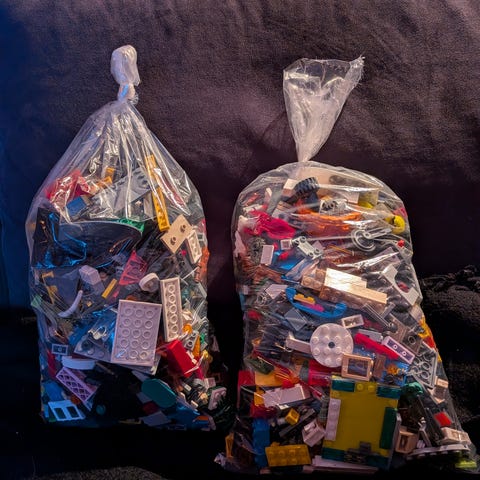 Selger unna smålego i "løsvekt". Alt er kjøpt de senere årene. 100 kr/kg. Én bærepose tar ca 6 kg og selges for 500. Legoen er for det meste fra sett av Ninjago, City, Technic, men er ikke samlet i sett nå. Må hentes.