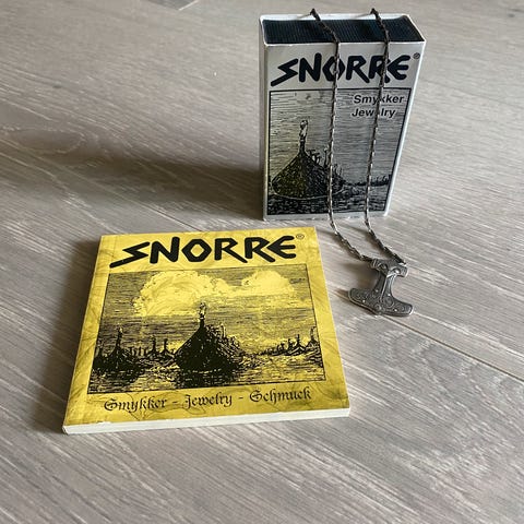Pent og lite brukt Snorre torshammer i sølv. Kjedet er 60 cm langt.