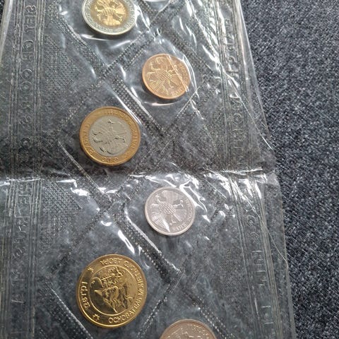 8 UNC mynter, som er en 3 rubler 1993 og syv 2 rubler 2000.
