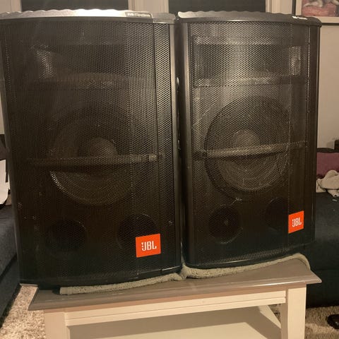 Håndbygd PA ifra et band selges pga plass å blir lite brukt. Di to store spiller helt sykt bra med nye sub å diskant som er helt nye ifra Danmusikk dem har hjelpet meg med å fikse dem opp sånn at dem spiller bra. Det er lagd får å spille høyt å det gjør det. Funker kjempe bra til typ fest eller til andre anledninger. Di to små har 4 nye diskanter og trenger 2 nye mellomtoner og nytt delefilter. Har prøvd å fikse dem men har ikke hatt tid men dem to små trenger nye delefilter så funker dem også. Har vært kjempe fornøyd med dem å ikke noe tull å velger da å selge det videre til noen som har interesse å fikse di to små å bruke dem. Selger også med forsterker til dem som funker veldig bra som jeg har brukt og har spilt med AUX å den følger med. Eneste som ikke følger med er ledninger imellom høyttaler å forsterker. Anlegget spilles på 4-8 ohm. Er kun den øverste forskeren som blir brukt til den som jeg selger med som dere ser på bildet