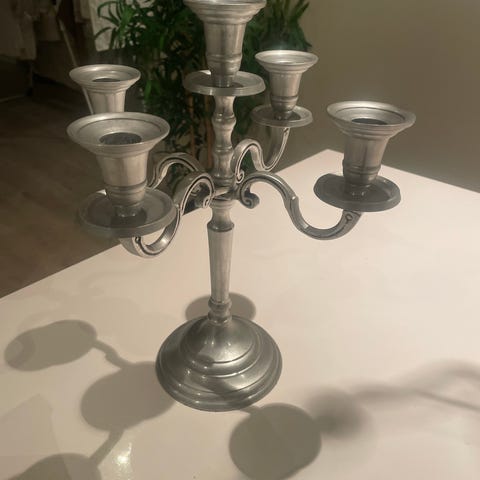 Lekker gulvkandelaber. Kan bruke både kubbelys og kronelys