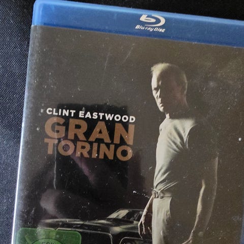 Clint Eastwood Gran Torino Blu-ray film. Inkluderer filmen Gran Torino med Clint Eastwood, presentert i Blu-ray-format. Passer for samlere og filmentusiaster.
