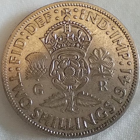 Storbritannia 2 shillings 1945 .500 sølv NY PRIS