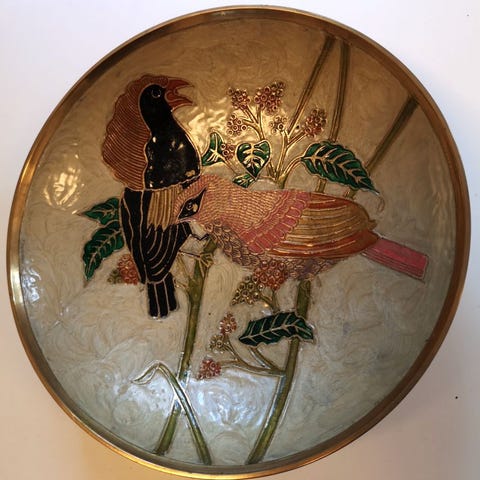 #emalje #kobber #skål #håndmalt #pynt #vintage #interiør #retro #trinket #kunsthåndverk #bruksskunst #sekstitall #fisk