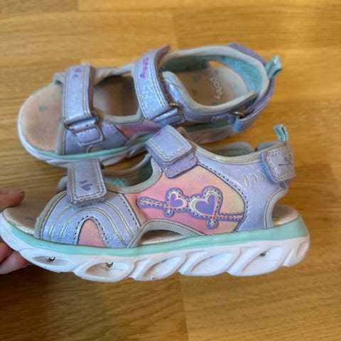 Geox sandaler for jente i størrelse 25. Sandalene er rosa med dekorative stjerne- og vingedetaljer på siden. De har justerbare borrelåsstropper for god passform. Materialet består av mesh og syntetisk skinn, med en gummisåle som gir godt grep. Egnet for bruk i sommerhalvåret.