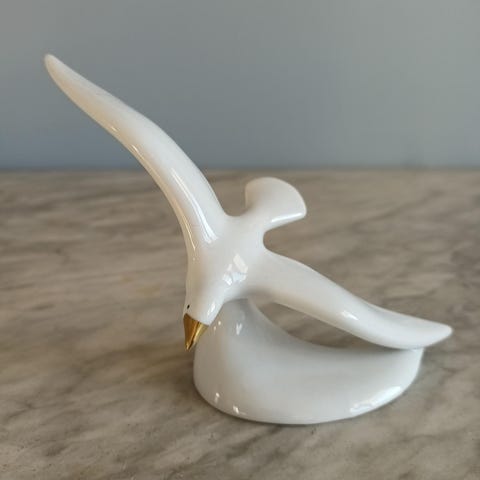 8 meget pent Kaffeservise med vakker blå ferge fra Egersund Norway. Alle deler er i veldig fin stand. Stemplet under Egersund Norway 73 korulen. Selges kr. 250 per sett.
