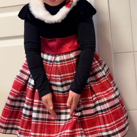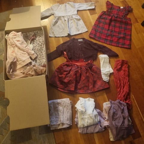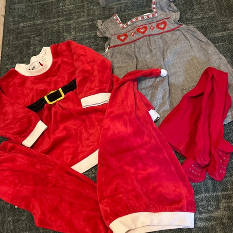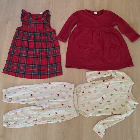 1 kjole, 2 bodyer, 1 bukse og sokker. Kjolen ble brukt en gang.