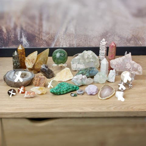 Polerte og rå mineraler og krystaller