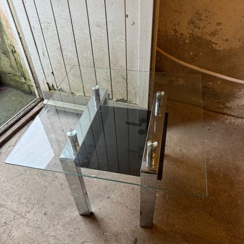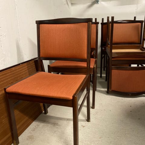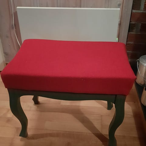 Litt vinglete krakk i typisk vintage stil. Kult stoff, men trenger en oppstramming i beina. Mulig jeg rekker å fikse det snart.