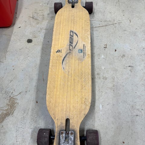 Norwegian Woods Longboard limited edition. Kjøpt uten hjul, dette kjøpte jeg utenom. Jeg synes det er gode hjul, de bråker ikke og brettet svinger godt.