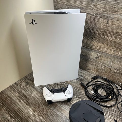 Selger min PS5 som er i meget bra stand. Kun brukt av en voksen, og kun brukt i kanskje 20 timer totalt, da familielivet satt en stopper for min gaming karriere. PS5en har blitt stående omtrent ubrukt siden kjøp. Har desverre ikke esken da jeg planla å beholde den, men en kontroller som også er som ny, samt strømkabel, usbkabel og hdmikabel medfølger.