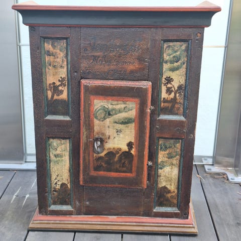 Skapet er 97 cm høyt, 74 cm bredt og 25 cm dypt.