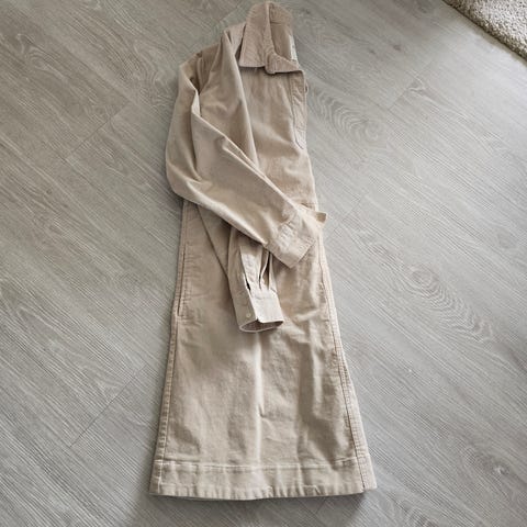 Pulz Jeans damejakke/kjole i størrelse XS, men passer for S også, hvit farge. Jakken er laget av denimmateriale og har knappelukking foran. Den har flere lommer og en klassisk krage. Jakken er designet for kvinner og passer til ulike anledninger.