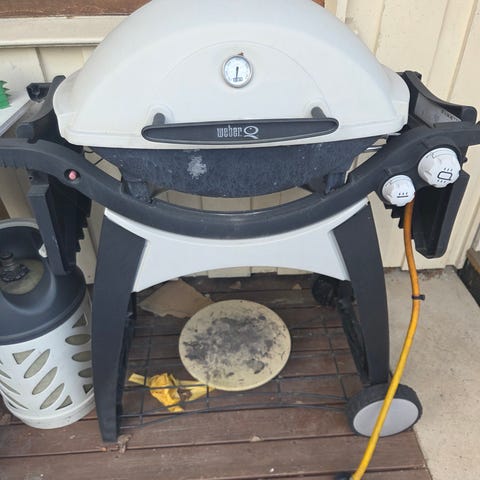 Weber Pulse 1000 grill med svart farge. Kompakt design med lokk og grillrist i støpejern. Egnet for utendørs bruk, enkel å rengjøre og transportere. Passer for små til mellomstore matlagingsbehov.